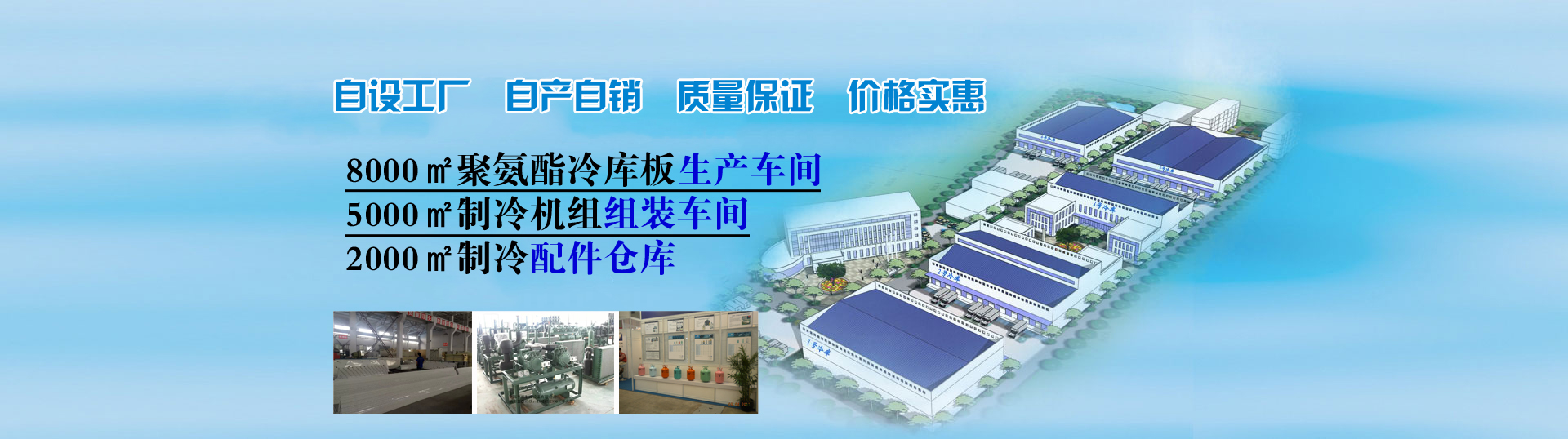 自設(shè)8000平方聚氨酯生產(chǎn)車(chē)間、5000平方制冷機(jī)組組裝車(chē)間真正做到自產(chǎn)自銷(xiāo)、讓利客戶。